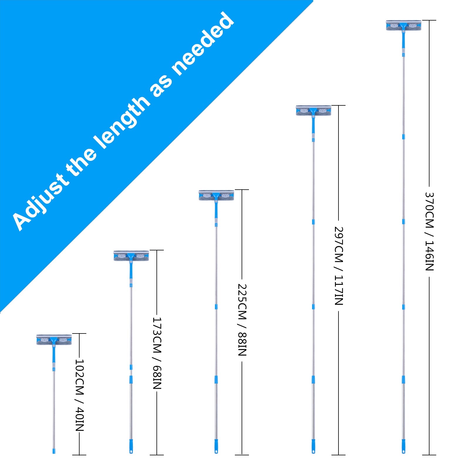All Purpose Window Cleaning Kit: With the Squeegee Washer Head only, it can clean shower glass, mirrors, etc. With the extension poles together, it can clean higher windows while you are standing on the ground, no need for ladder. The number of poles can also be selected according to the height of the indoor and outdoor glass.