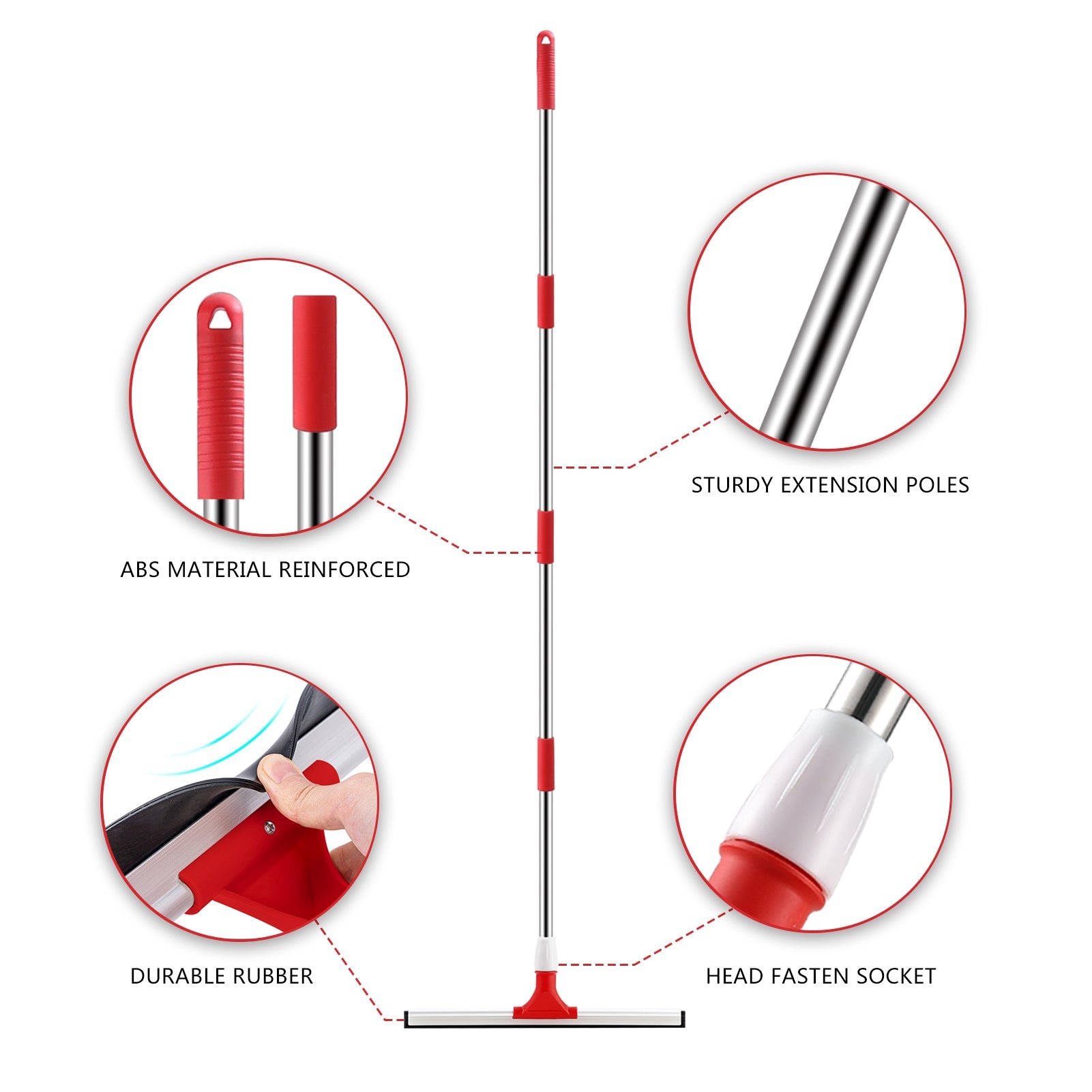 Convenient to Use: It especially takes ergonomic design between the pole and rubber squeegee head, which can ensure the floor cleaning takes less effort. And super easy to clean itself, only water is enough after each wiping.